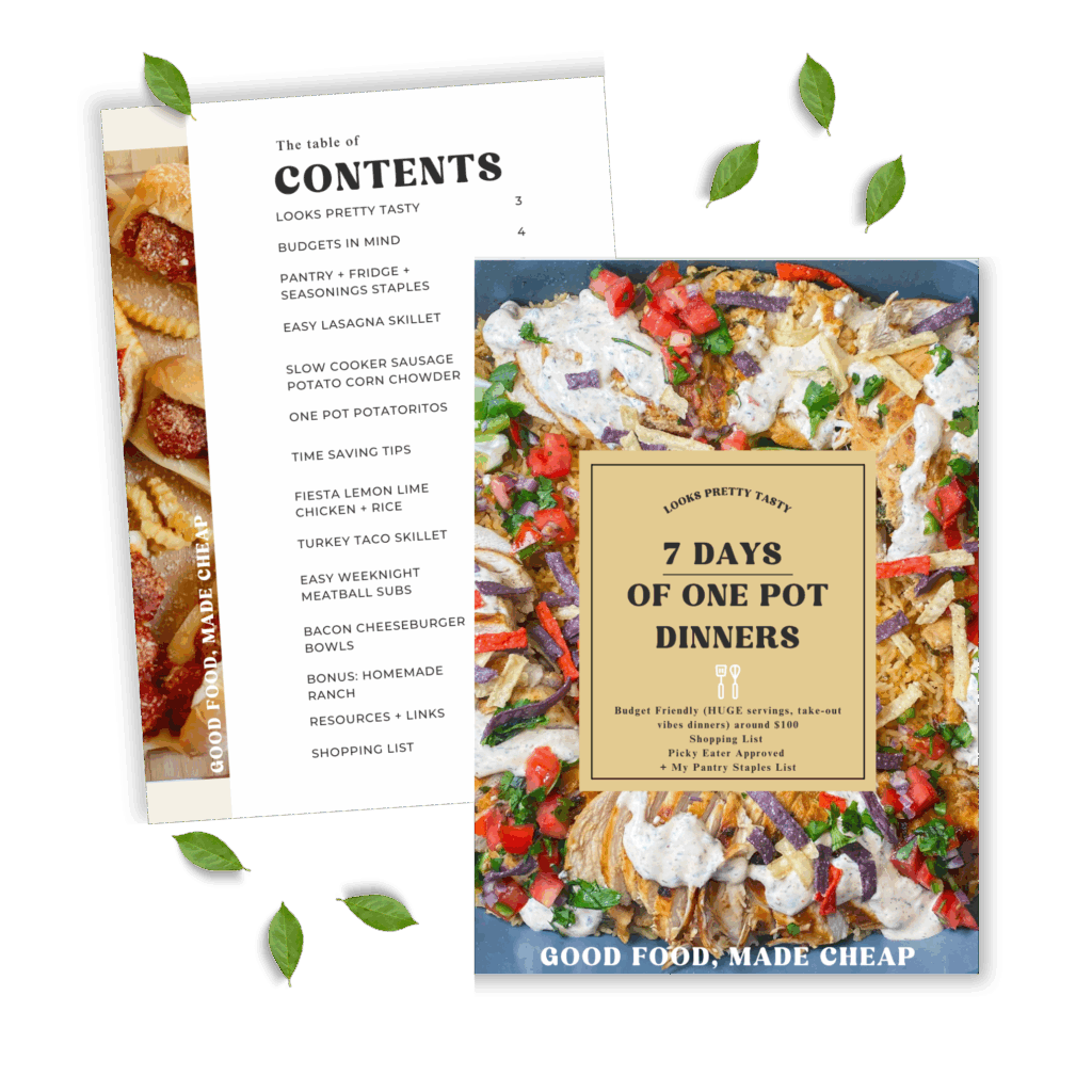 This ebook offers up 7 recipes (plus a my favorite homemade ranch dressing recipe) that only involve one pot for cooking your entire dinner each night. Receive tips on saving time and money in the kitchen, a shopping list for all of the dinners, my personal pantry staples list, and a resource list for links to recipes and products I love using in the kitchen!